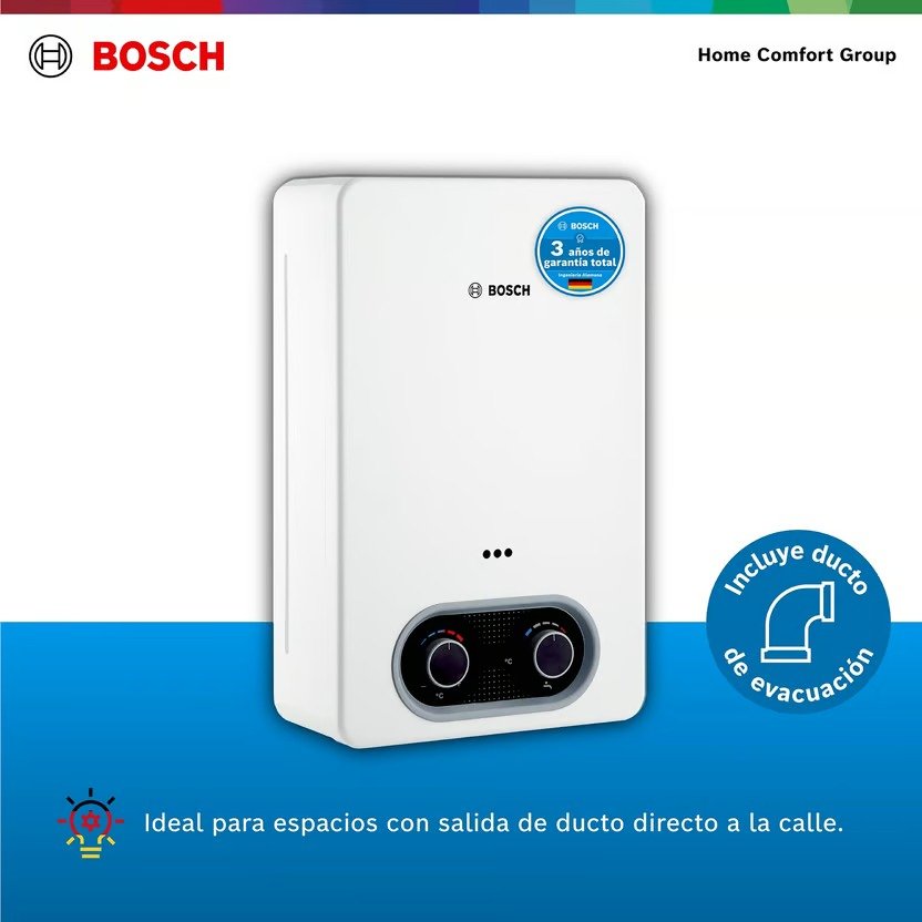 Sumérgete en la experiencia única de nuestro calentador de agua a gas Essential Therm 1400 F: eficiencia y diseño cautivador. Compacto y electrónico, brinda agua caliente al instante para un comfort sin límites. El exclusivo diseño Roundagon Bosch, con 8 sistemas de seguridad, fusiona elegancia y seguridad. Ajusta la temperatura con dos perillas, ahorra gas con eficiencia energética y selector de potencia, garantizando durabilidad con un intercambiador 100% en cobre. Incluye un ventilador para expulsar gases eficazmente. Se enciende automáticamente al abrir el grifo de agua caliente. Tu inversión está respaldada con 3 años de garantía, una promesa de calidad y seguridad. Descubre el arte de transformar tu rutina diaria con nuestro calentador, donde cada detalle es una invitación al comfort extraordinario.